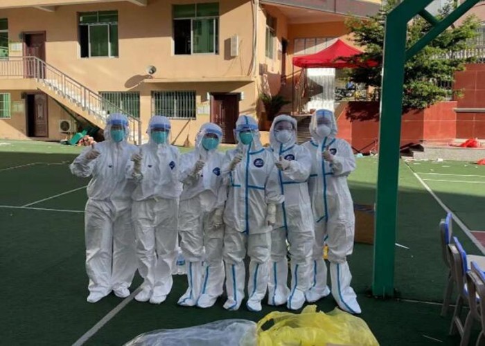 一夜奮戰,為了能更好的完成任務,他們在現場只是短暫的休息,精疲力盡的醫護人員們躺在簡易的凳子上休憩的畫面讓人久久難忘,以天為被,以凳子為床,穿著防護服,戴防護面罩及手套,雖然是秋天,福建的天氣也是非常悶,汗水早已浸透他們的衣裳。有的醫生奮戰一天一夜,早已體力透支,卻仍不愿離開現場去補眠,為莆田人民群眾的健康保駕護航。