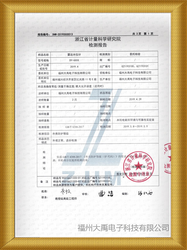 雷達水位計IP67防護等級檢測報告